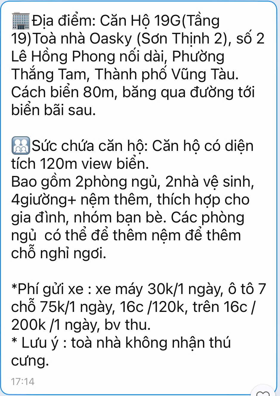 Căn Hộ Oasky 19G Vũng Tàu giá rẻ - Chính chủ cho khách du lịch thuê theo ngày Homestay Oasky Vũng Tàu giá rẻ - Hotline tư vấn đặt phòng tại Chung cư Oasky Vũng Tàu: 0908 137 236