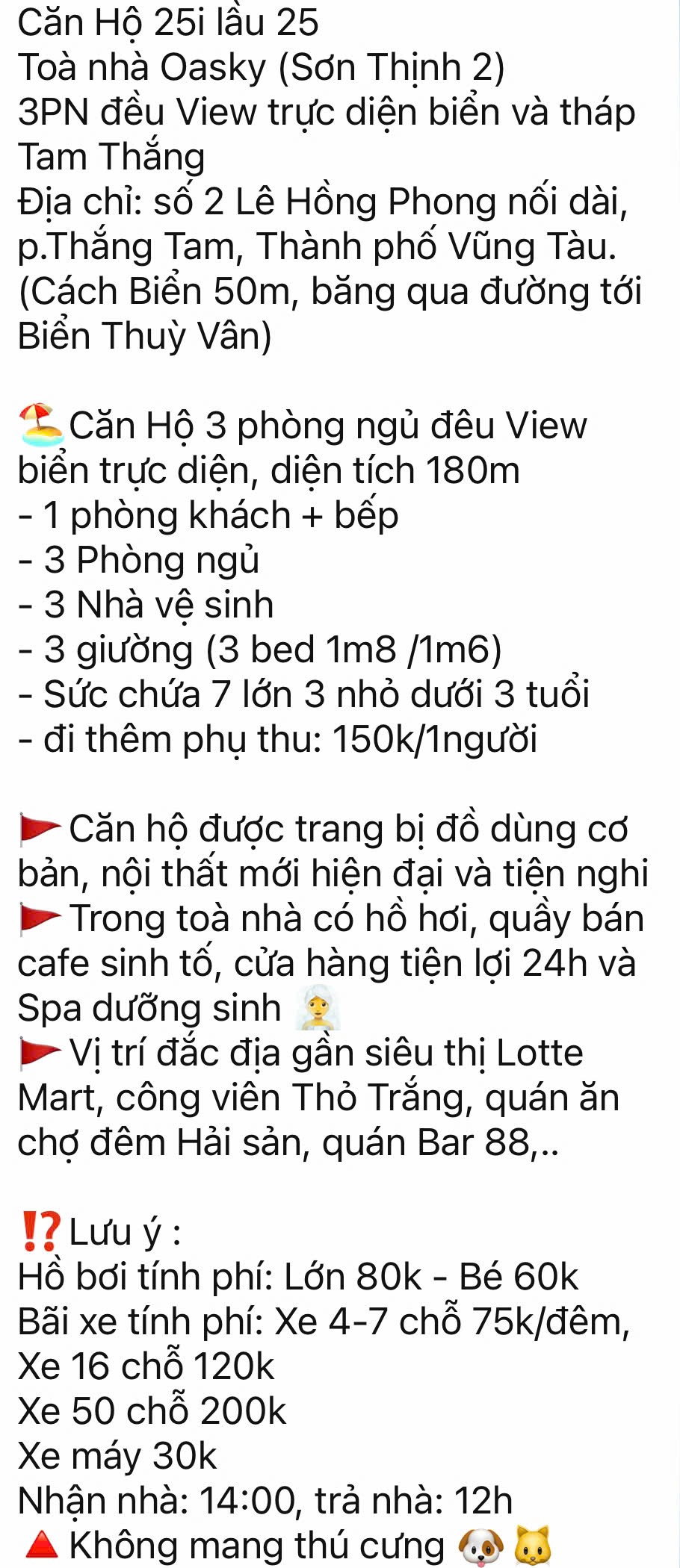 Căn Hộ Oasky 25i Vũng Tàu giá rẻ - Chính chủ cho khách du lịch thuê theo ngày Homestay Oasky Vũng Tàu giá rẻ - Hotline tư vấn đặt phòng tại Chung cư Oasky Vũng Tàu: 0908 137 236 Chính Chủ chuyên cho khách du lịch thê theo ngày Căn Hộ Oasky giá rẻ, Chính chủ cho thuê Homestay Oasky cam kế luôn có giá thuê cạnh tranh tốt bậc nhất thị trường Vũng Tàu. Liên hệ ngay để được tư vấn đặt phòng Chung Cư Oasky Vũng Tàu tại địa chỉ số 2 Lê Hồng Phong, Phường Thắng tam, Vũng Tàu. Hotline tư vấn: 0908 137 236