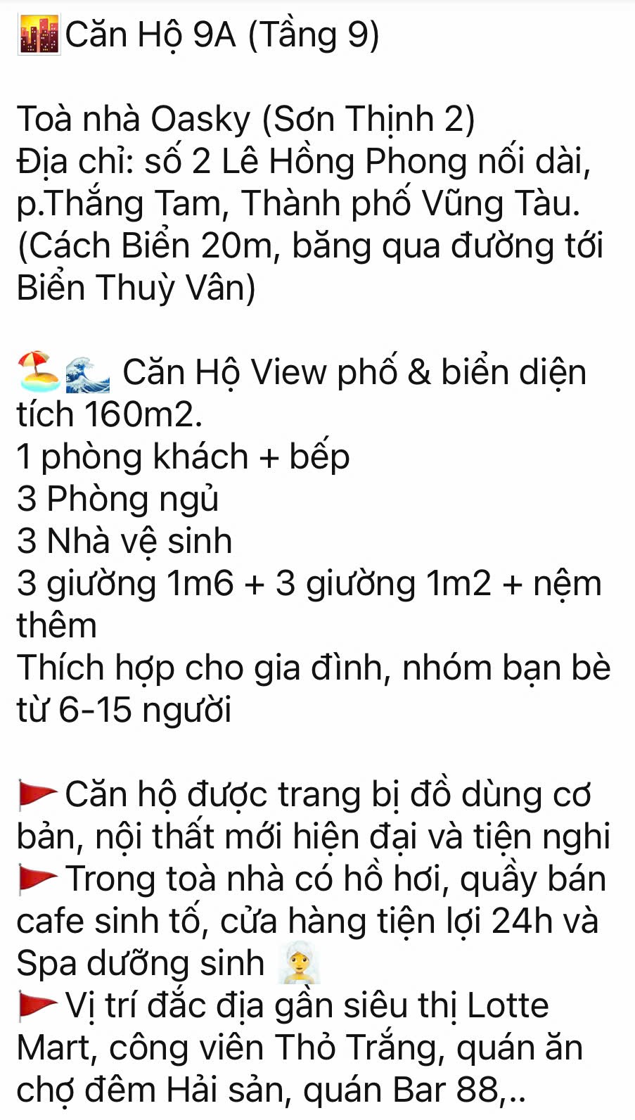 Căn Hộ Oasky 9A Vũng Tàu giá rẻ - Chính chủ cho khách du lịch thuê theo ngày Homestay Oasky Vũng Tàu giá rẻ - Hotline tư vấn đặt phòng tại Chung cư Oasky Vũng Tàu: 0908 137 236 Chính Chủ chuyên cho khách du lịch thê theo ngày Căn Hộ Oasky giá rẻ, Chính chủ cho thuê Homestay Oasky cam kế luôn có giá thuê cạnh tranh tốt bậc nhất thị trường Vũng Tàu. Liên hệ ngay để được tư vấn đặt phòng Chung Cư Oasky Vũng Tàu tại địa chỉ số 2 Lê Hồng Phong, Phường Thắng tam, Vũng Tàu. Hotline tư vấn: 0908 137 236
