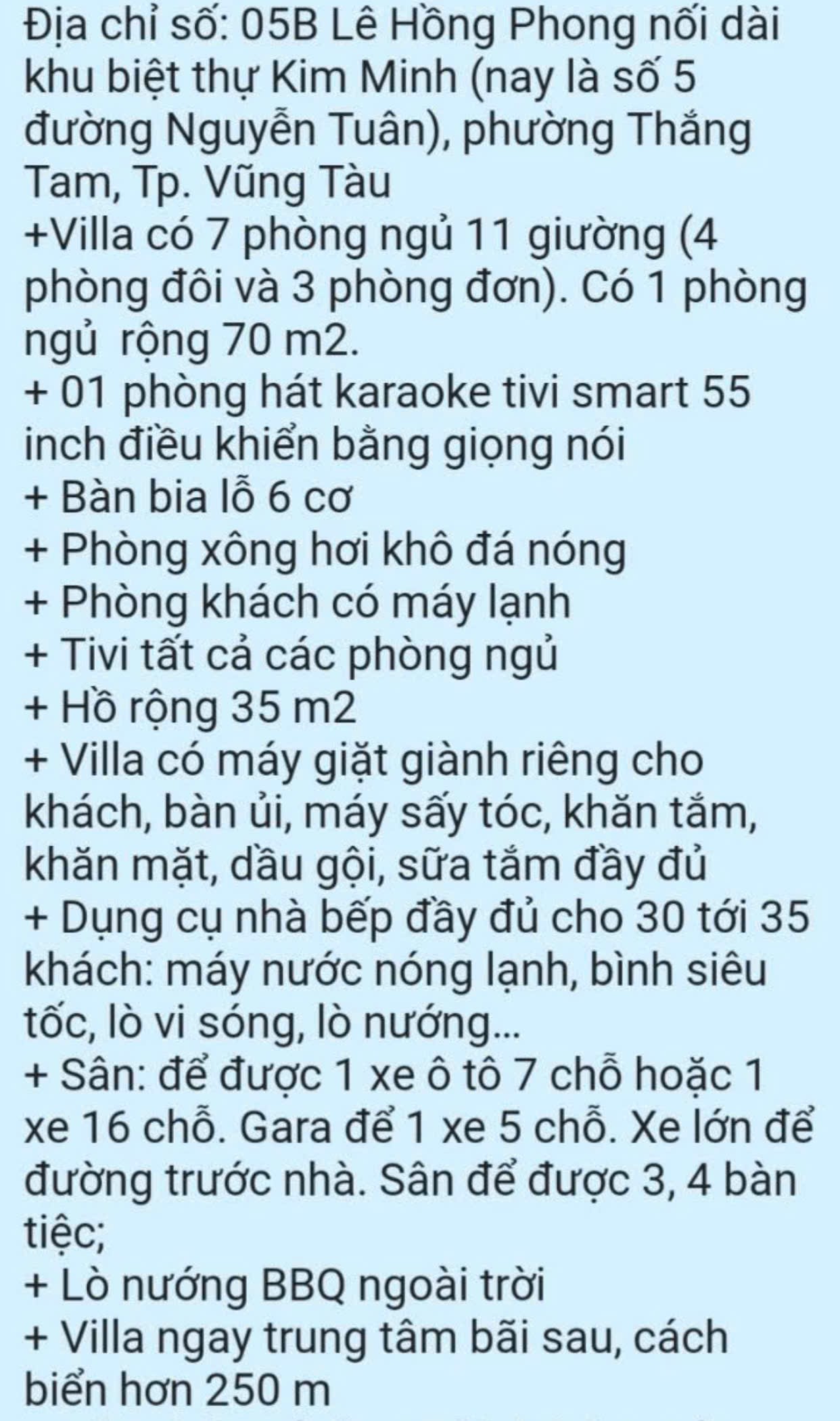 Villa Vũng Tàu giá rẻ - Địa chỉ: 5 Nguyễn Tuân, Lê Hồng Phong nối dài, Khu Biệt Thự Kim Minh, Vũng Tàu - Chính chủ cho khách du lịch thuê Biệt Thự Vũng Tàu theo ngày giá rẻ tận gốc - Hotline tư vấn: 0908 137 236 CHÍNH CHỦ chuyên cho Khách Du Lịch thuê theo ngày VILLA VŨNG TÀU GIÁ RẺ TẬN GỐC. Chính chủ cho thuê CAM KẾT LUÔN CÓ GIÁ CHO THUÊ BIỆT THỰ VŨNG TÀU CẠNH TRANH TỐT BẬC NHẤT THỊ TRƯỜNG. Hãy nhấc máy và liên hệ ngay với chúng tôi CHÍNH CHỦ CHO THUÊ VÀ LÀ ĐƠN VỊ ĐẶT PHÒNG VŨNG TÀU UY TÍN GIÁ RẺ. Hotline hỗ trợ tư vấn đặt phòng Vũng Tàu: 0908 137 236